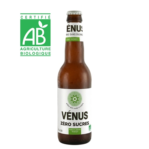VÉNUS est la première bière biologique sans sucres avec alcool, une véritable innovation sans compromis sur le goût.
